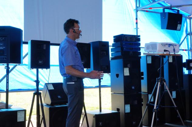 Более подробно остановились на знакомстве с новыми акустическими системами (DELTA125-P, TX128 MkII, CL3212, CL3212-P), модернизированными моделями усилителей V-серии, новым активным микшером PM1444, а также с линейным массивом постоянной кривизны T536e («triple») и элементом нового 12” линейного массива NL322.